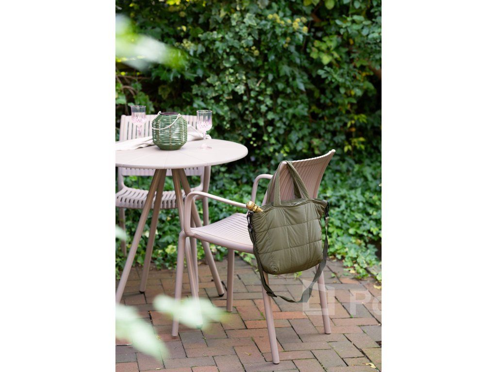 Béžovo-piesková oceľová súprava s vankúšmi. Jemné neutrálne tóny pre elegantný vzhľad terasy.