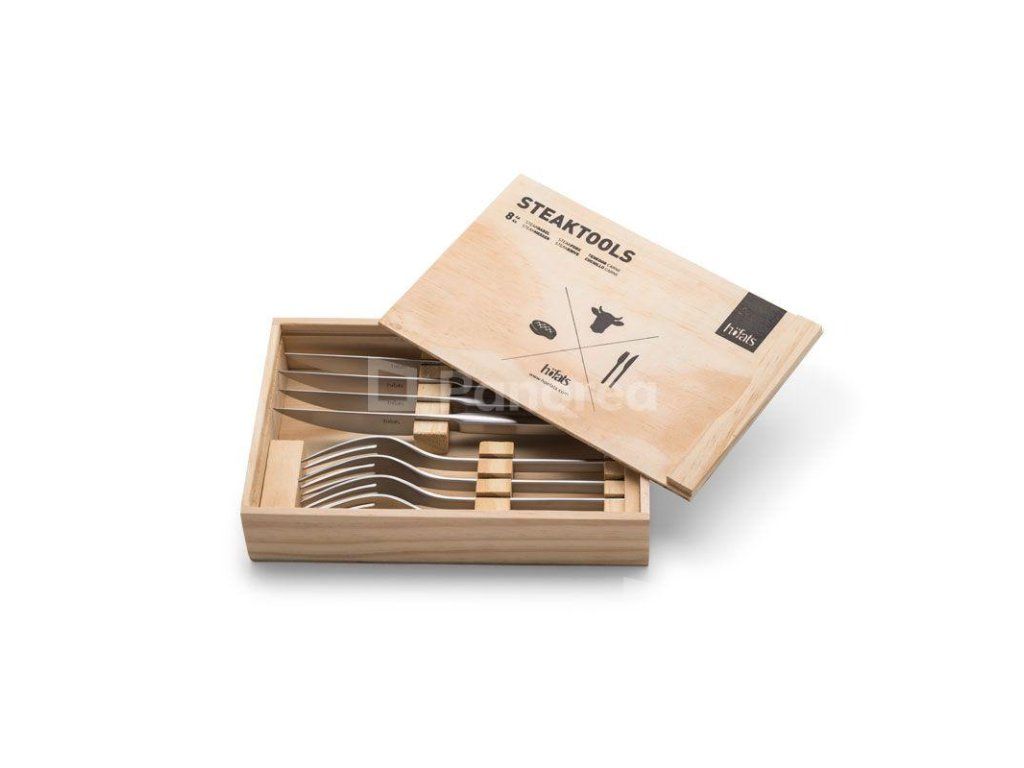 Vďaka perfektnému ostrie nie sú mäsová vlákna roztrhnutá, ale presne narezané. Mäso tak zostáva šťavnaté a aromatické. Kované steakové príbory z matnej nerezovej ocele, vykované v jednom kuse sú vo vašej ruke dokonale vyvážené. Steakové príbory sú vyrobené z ušľachtilej nerezovej ocele. Sú vhodné do umývačky riadu a sú rozmerovo stabilné. Steakové príbory sú nezničiteľné a zaručujú dlhodobú radosť z dobrého mäsa a perfektného stolovanie. Dodávané ako štvordielna sada v kvalitnej drevenej krabičke a sú tak dokonalým darčekom pre každého milovníka mäsa a pre všetkých, ktorí ocenia dobré jedlo.