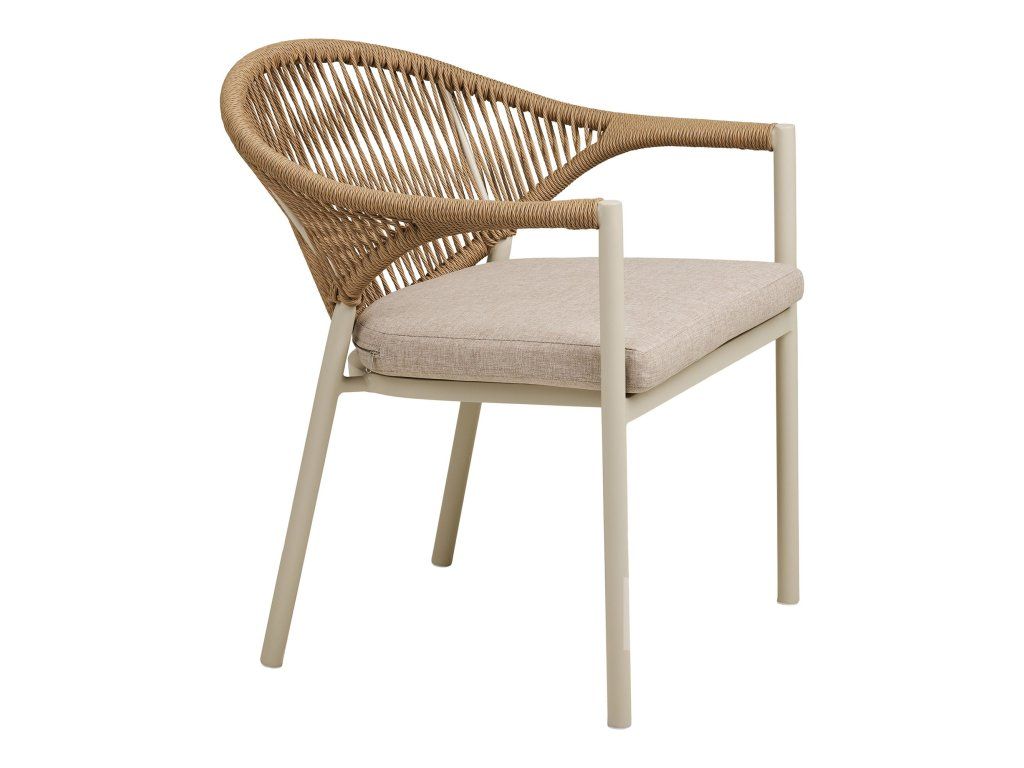 Vytvorte si pri svojom jedálenskom stole atmosféru luxusného rezortu. Abela je štýlová jedálenská stolička, ktorá spája organický vzhľad prírodných materiálov s odolnosťou moderných technológií. Vďaka jemnej pieskovej farbe a prepracovanému výpletu z PE ratanu vnesie do vášho interiéru alebo na terasu svetlo, vzdušnosť a maximálne pohodlie.