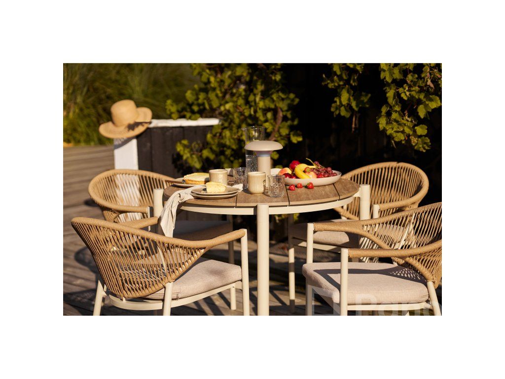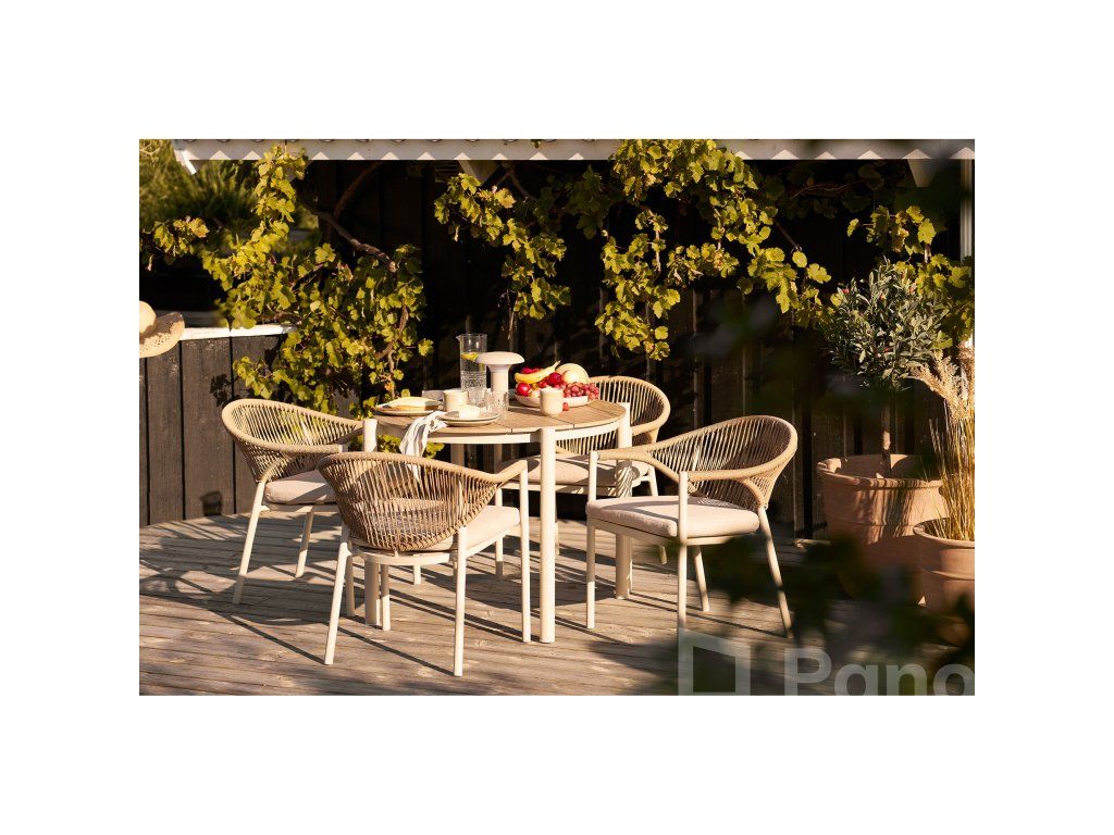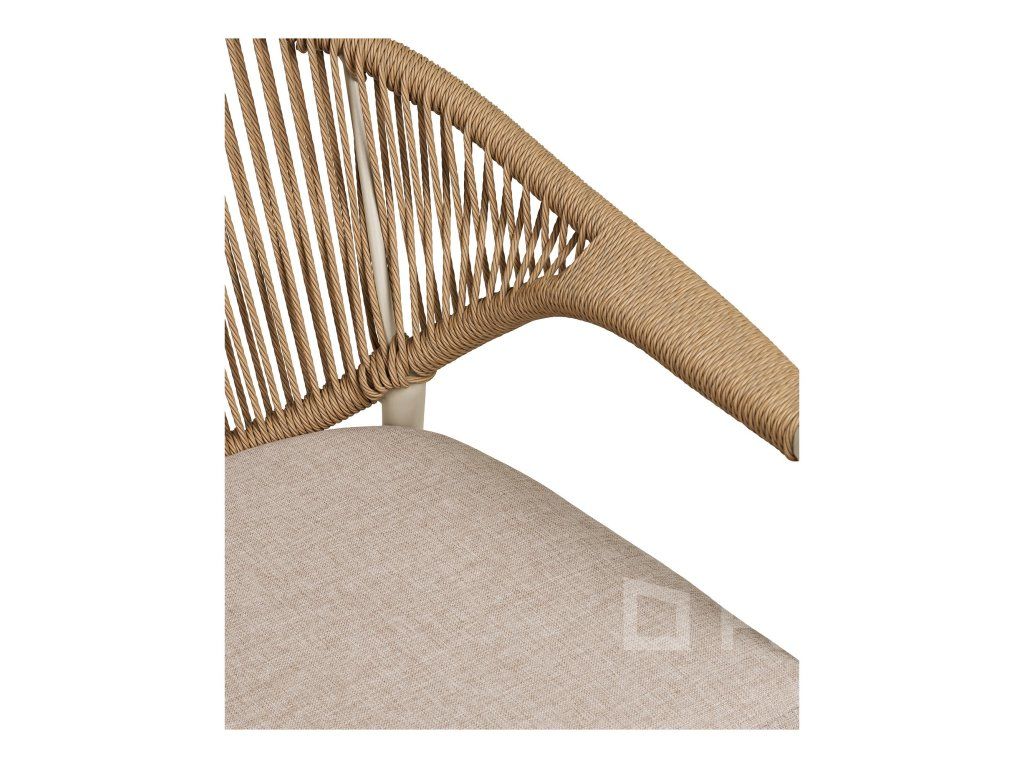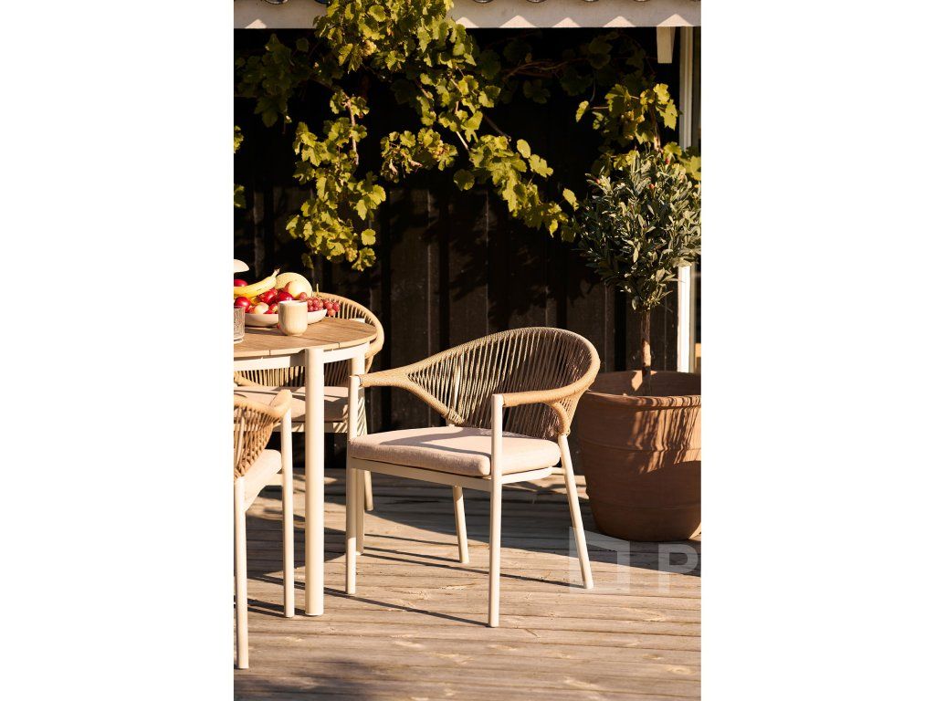 Stolička Abela je postavená na pevnom hliníkovom ráme, ktorý je nielen odolný voči korózii, ale zároveň robí stoličku neuveriteľne ľahkou (iba 3,6 kg). Výplet z PE ratanu v prírodnom odtieni dodáva stoličke hrejivý, naturálny charakter, pričom si zachováva všetky výhody syntetických materiálov.