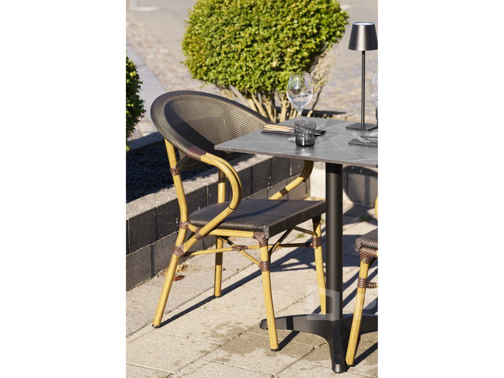 Preneste atmosféru útulných parížskych kaviarní priamo k sebe domov alebo na terasu. Calda je stolička, ktorá na prvý pohľad klame telom – jej rám vyzerá ako prírodný bambus, no v skutočnosti ide o vysokokvalitný hliník. V kombinácii s tmavohnedým výpletom vytvára elegantný a mimoriadne odolný kus nábytku, ktorý prežije sezóny bez známok opotrebenia.
