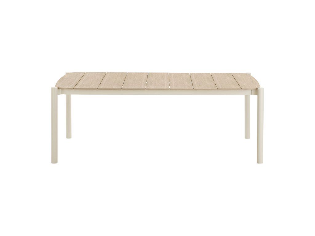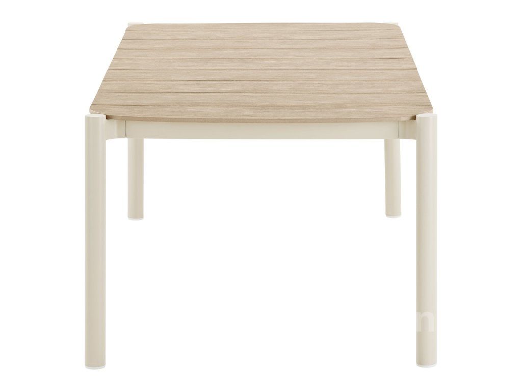 Hľadáte stôl, ktorý bude dominantou vašej terasy alebo jedálne, no zároveň vás odbremení od neustálej údržby dreva? Abela s rozmermi 200 x 100 cm je navrhnutý pre tých, ktorí milujú pohostinnosť. Kombinácia pieskového hliníkového rámu a dosky v dekore prírodného dreva vytvára svieži, presvetlený vzhľad, ktorý vnesie do vášho domova atmosféru nekonečného leta.
