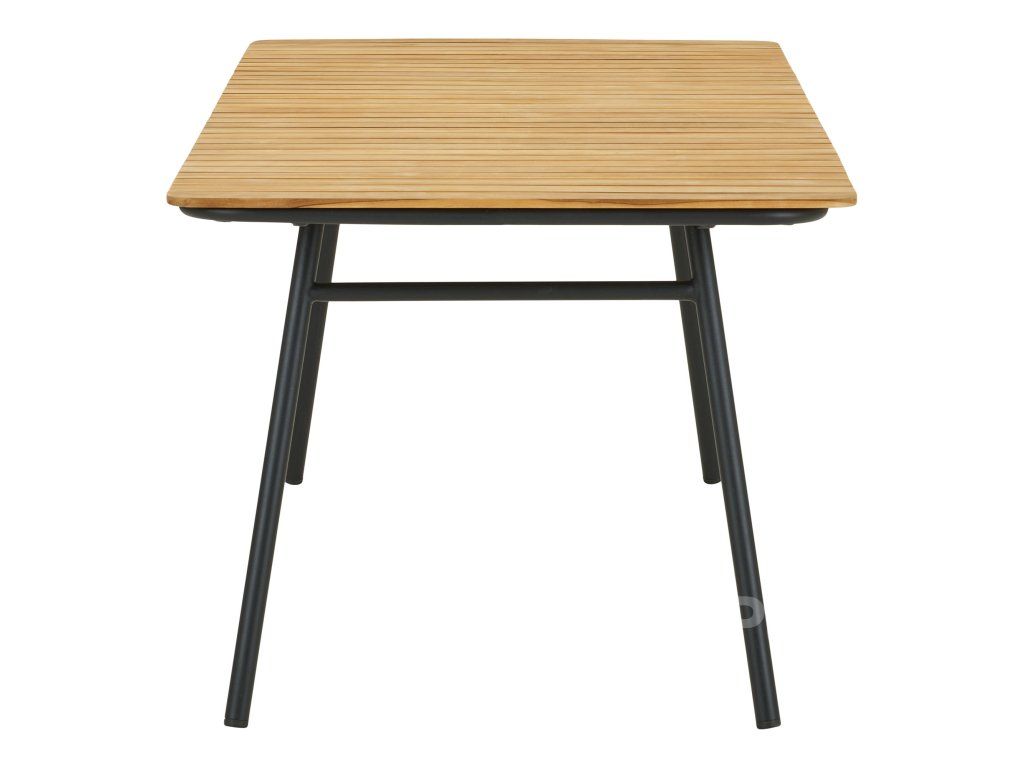 Doska stola je vyrobená z 100% FSC® certifikovaného teaku. To znamená, že drevo pochádza zo zodpovedne obhospodarovaných lesov. Teak je prirodzene bohatý na oleje, čo mu dodáva výnimočnú odolnosť voči vlhkosti a škvrnám, a zároveň zaručuje, že stôl bude s vekom starnúť do krásy.