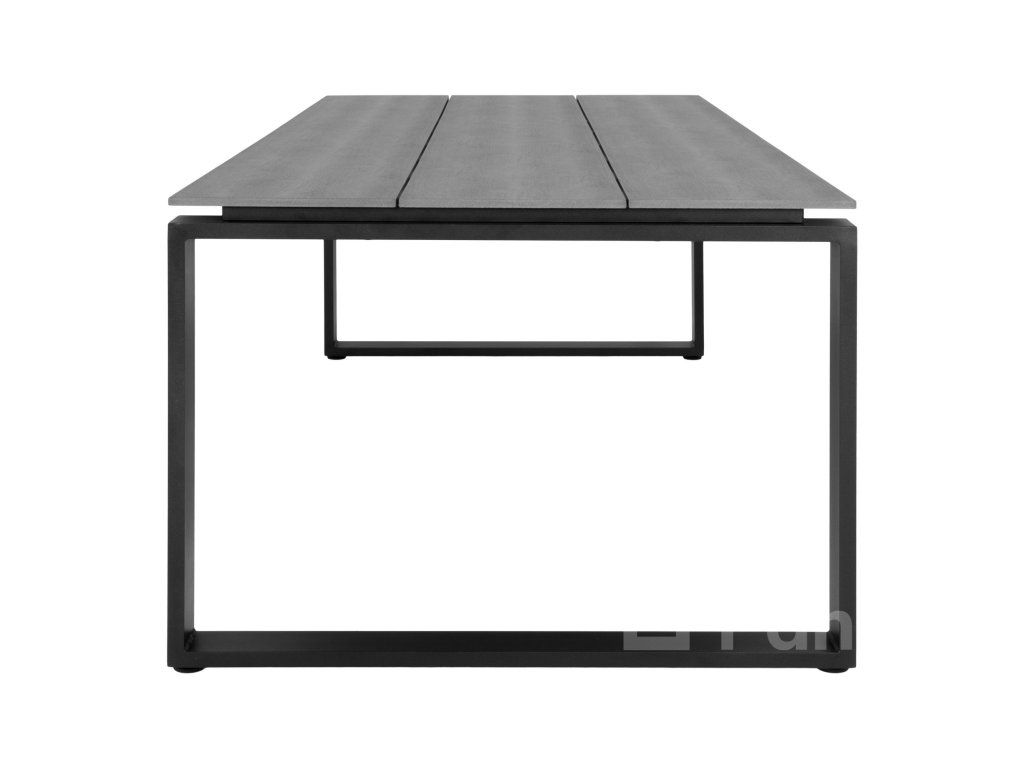 Stôl Denver je konštruovaný tak, aby vydržal. Doska zo sivého nonwoodu (polyetylénu) verne imituje vzhľad drevených latiek, ale zbavuje vás povinností spojených s údržbou masívu. Čierny hliníkový rám zaisťuje stabilitu, nízku hmotnosť a stopercentnú ochranu proti korózii.