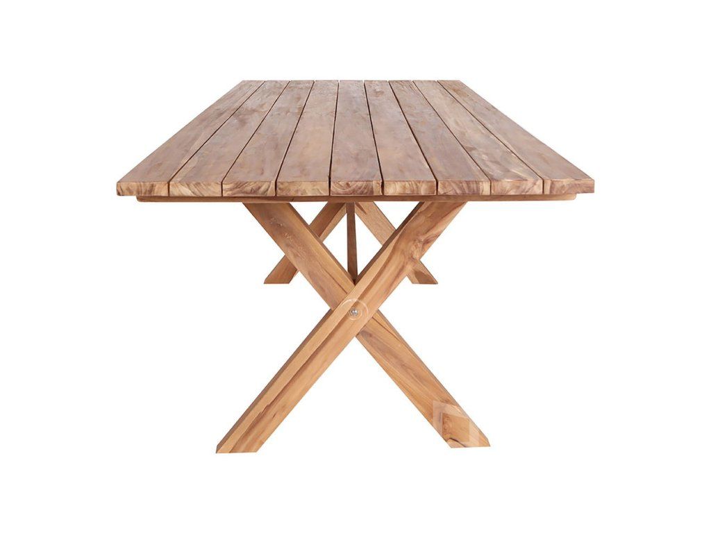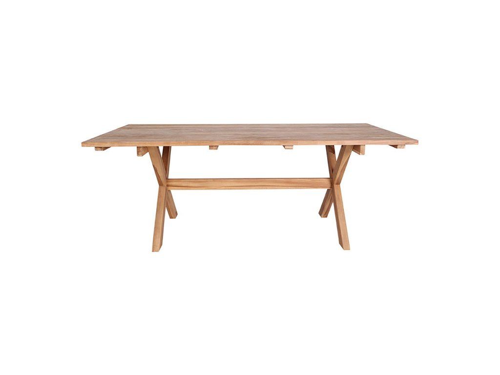 Celodrevený dizajn: Masívne teakové nohy nadväzujú na dosku v čistom, priamočiarom štýle, ktorý necháva vyniknúť samotnú krásu dreva.