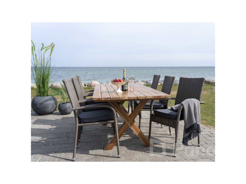 Použitie recyklovaného teaku znamená, že na výrobu tohto stola neboli vyťaté nové stromy. Drevo pochádza zo starých stavieb, lodí či mostov, čo zaručuje jeho mimoriadnu hustotu a stabilitu, keďže ide o materiál, ktorý prirodzene pracoval desiatky rokov. Murcia je tak nielen krásna, ale aj šetrná k životnému prostrediu.