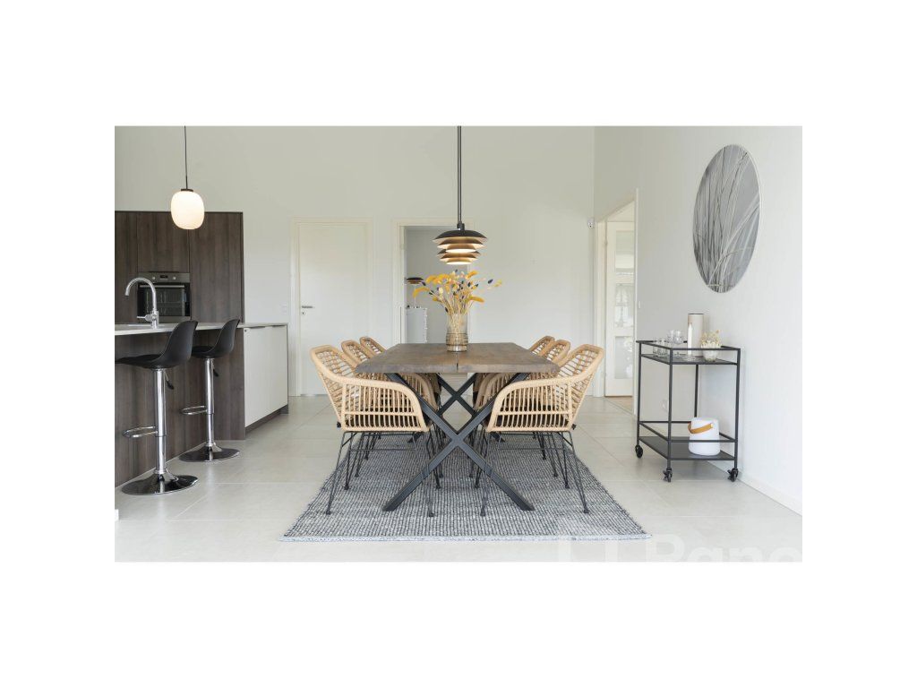 Vneste do svojho domova kúsok prírody v rafinovanom modernom balení. Trieste v prírodnej farbe prináša dokonalú rovnováhu medzi útulným „boho“ štýlom a industriálnou čistotou. Prírodný odtieň výpletu rozbíja prísnosť čiernych kovových nôh, čím vytvára kúsok, ktorý pôsobí teplo, priateľsky a pritom veľmi súčasne.
