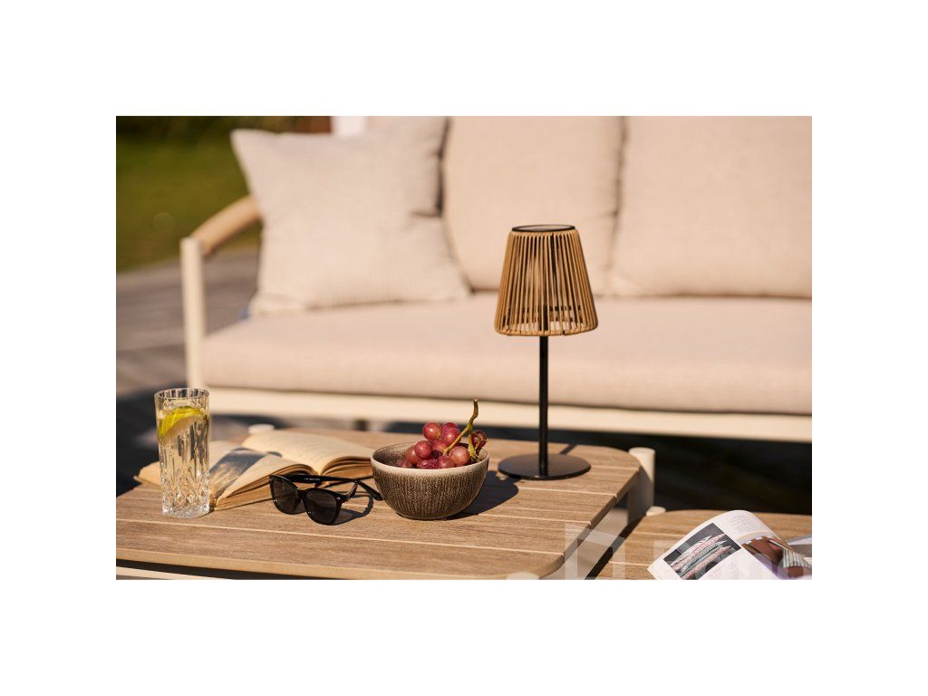 Lampa Salford prináša hrejivý pocit domova priamo na vašu záhradu či balkón. Jej dizajn v kombinácii hnedého polyratanu a čierneho kovu dokonale imituje klasické lucerny, pričom vo vnútri ukrýva modernú technológiu, ktorá sa postará o náladové osvetlenie bez jediného kábla.