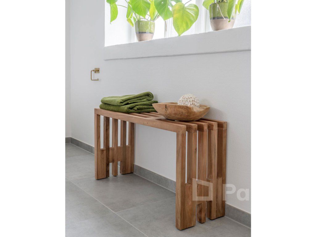 Vysoká odolnosť: Teakové drevo je prirodzene odolné voči vlhkosti a škodcom, vďaka čomu je lavička vhodná nielen do interiéru, ale aj do kúpeľní či zimných záhrad.
