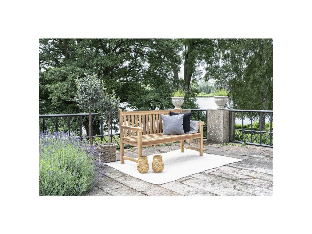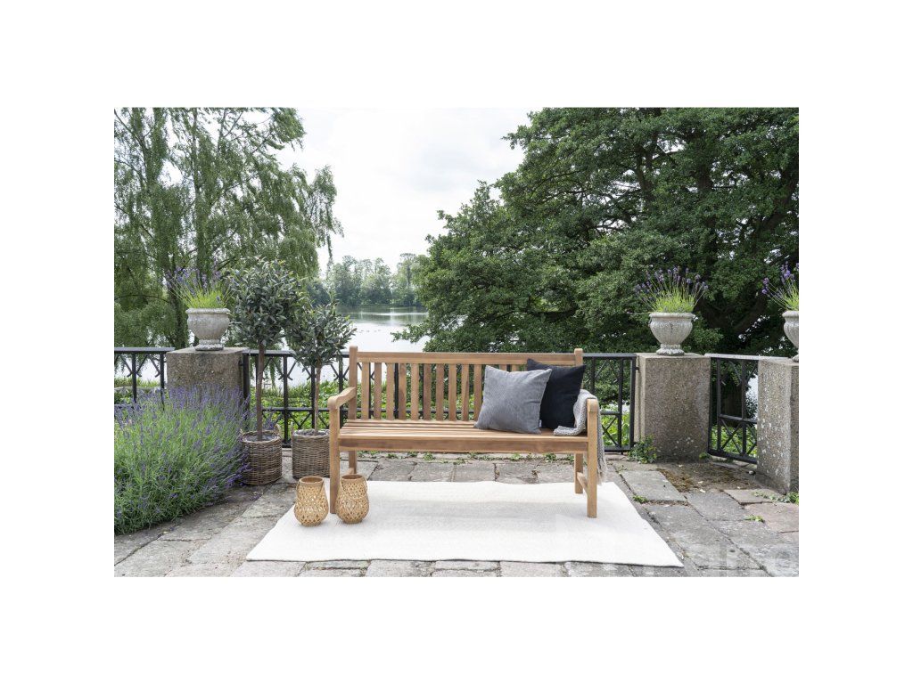 Vysoká odolnosť: Masívny teak je prirodzene odolný voči poveternostným vplyvom, hnilobe a hmyzu. S hmotnosťou 24,1 kg je lavička dostatočne robustná, aby odolala aj silnejšiemu vetru.