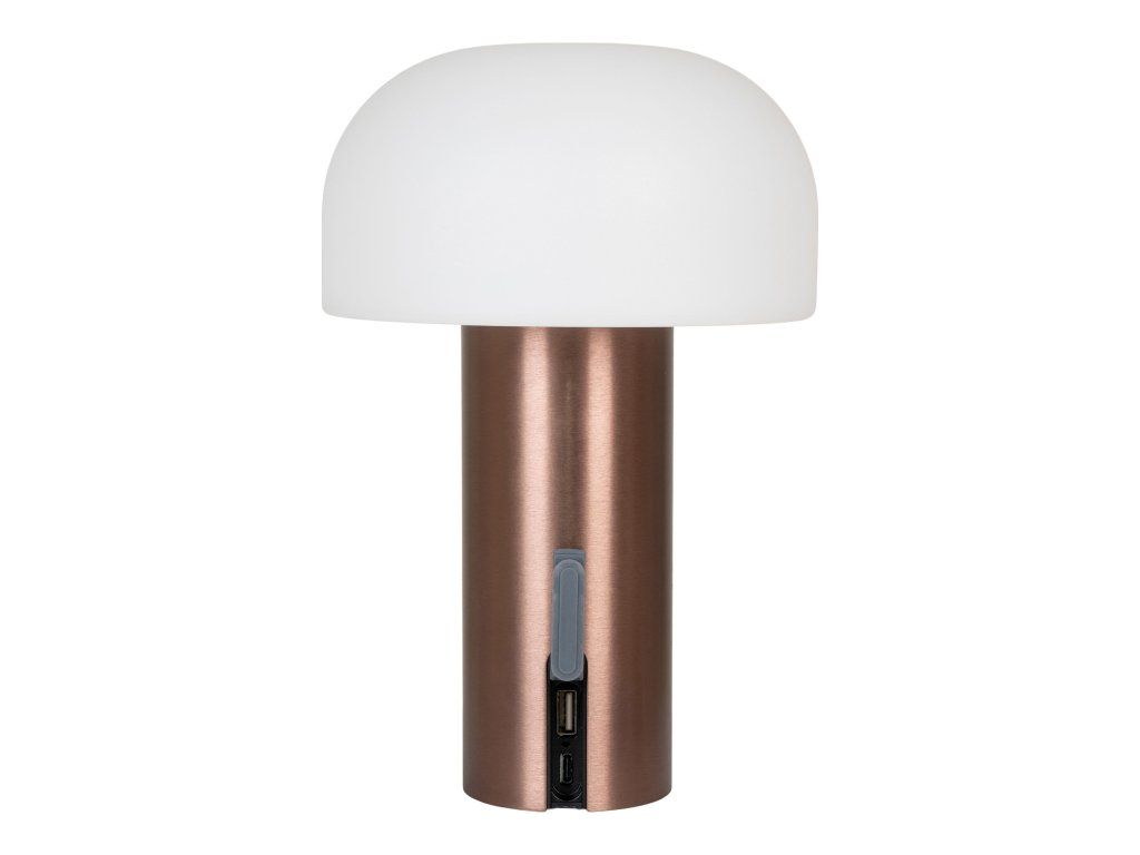 LED lampa Soham: Elegancia v bielej a medenej s funkciou nabíjania