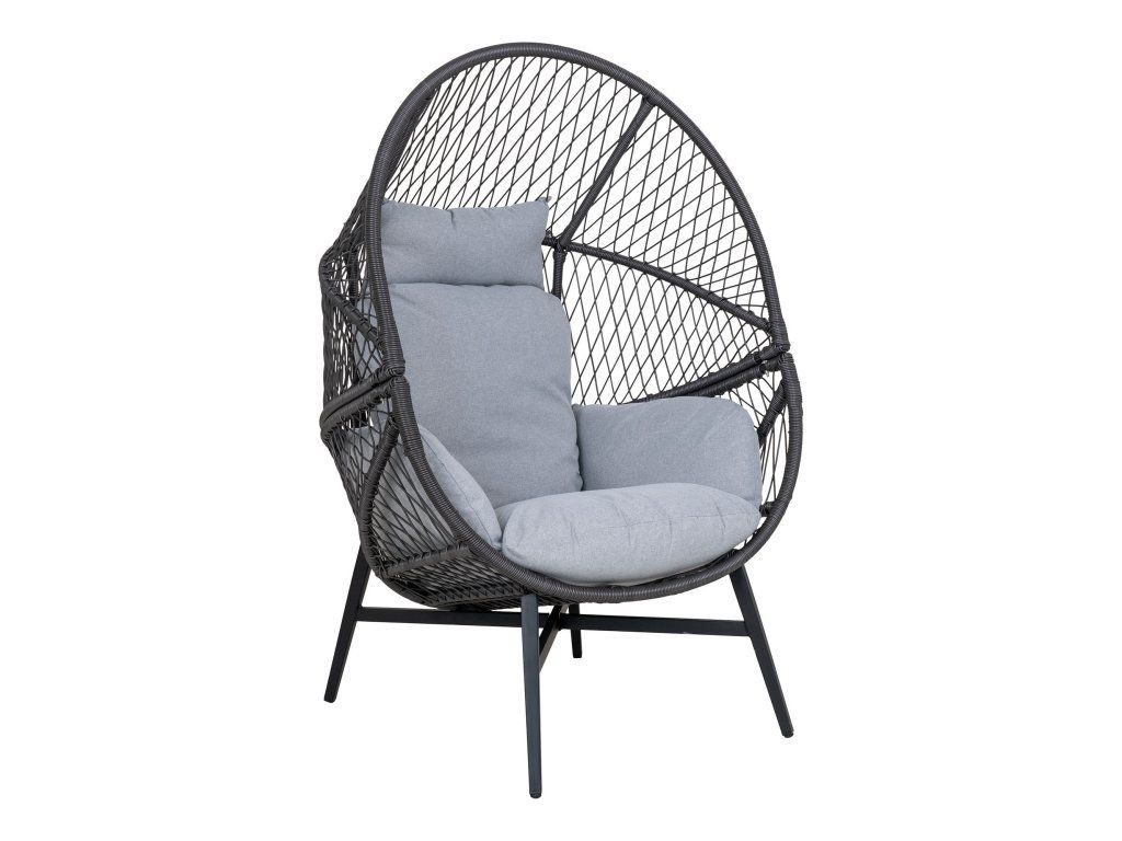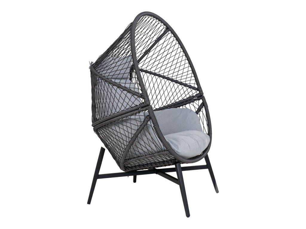 Stabilná kovová základňa: Čierne oceľové nohy zabezpečujú vysokú nosnosť až 110 kg a dodávajú kreslu potrebnú stabilitu aj na mierne nerovných povrchoch terás.