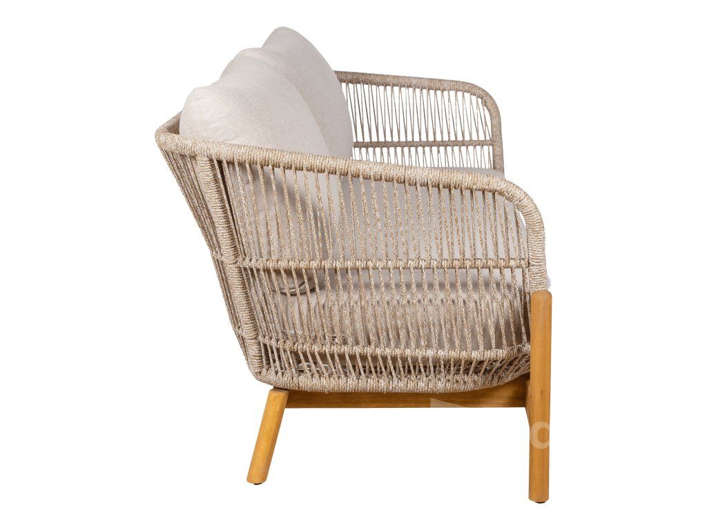 To, čo robí pohovku Terracina výnimočnou, je súhra textúr. Masívny drevený rám poskytuje stabilitu a prírodný základ, zatiaľ čo boky a opierka chrbta sú vypletené odolným lanom (rope). Tento prvok nielen skvele vyzerá, ale zabezpečuje aj prirodzenú cirkuláciu vzduchu, čo oceníte počas horúcich letných dní.