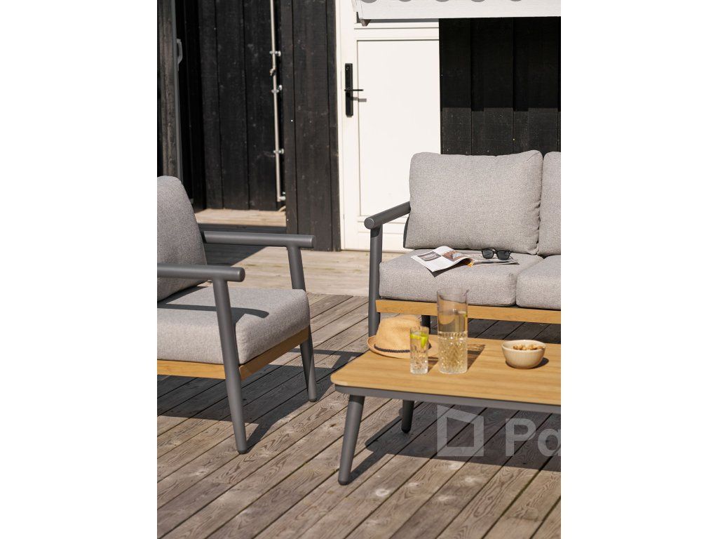 Hľadáte nábytok, ktorý pôsobí sebavedomo, moderne a vyžaduje absolútne minimálnu údržbu? Set Comillas v elegantnej antracitovej šedej je navrhnutý pre moderné terasy a mestské priestory. Kombinácia pevného hliníkového rámu a hrejivých detailov z Nonwoodu vytvára nadčasový vizuál, ktorý premení váš exteriér na štýlovú lounge zónu.