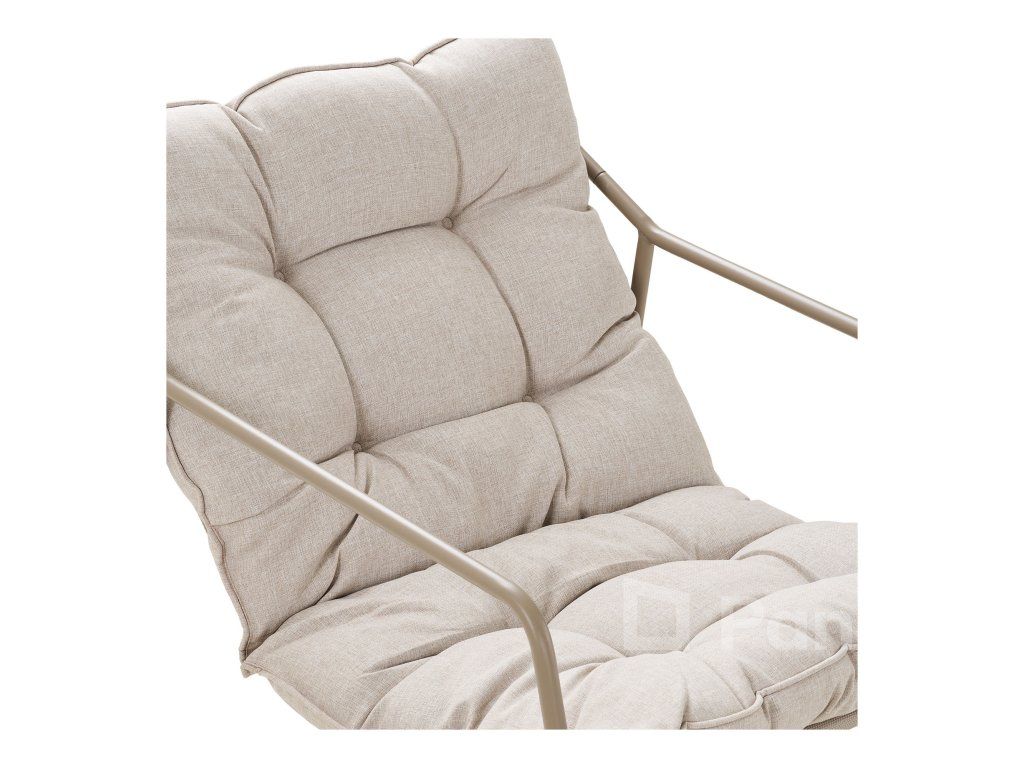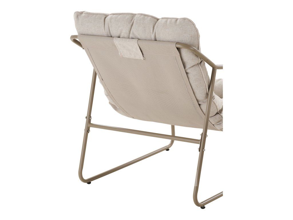 Pohodlné polstrovanie: Napriek nízkej výške sedu (31 cm) poskytujú podušky v pieskovej farbe príjemnú oporu pre dlhé letné večery.