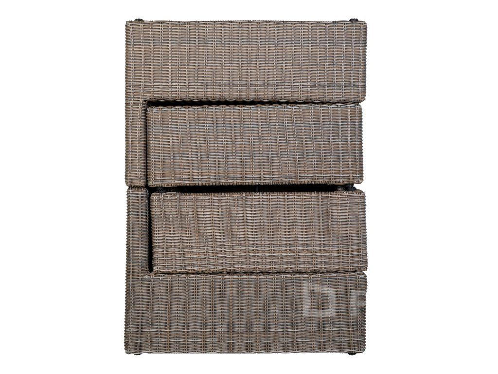 Kvalitné materiály: Pevný oceľový rám v kombinácii s odolným PE ratanom zaručuje dlhú životnosť a stálu farbu aj na priamom slnku.