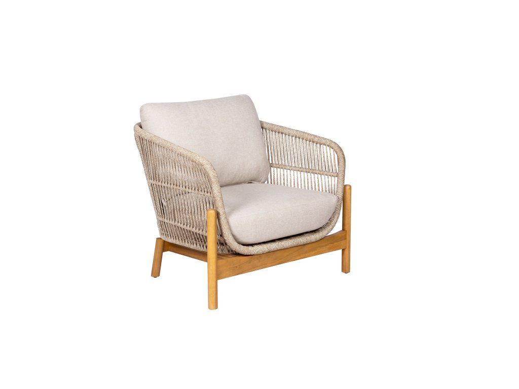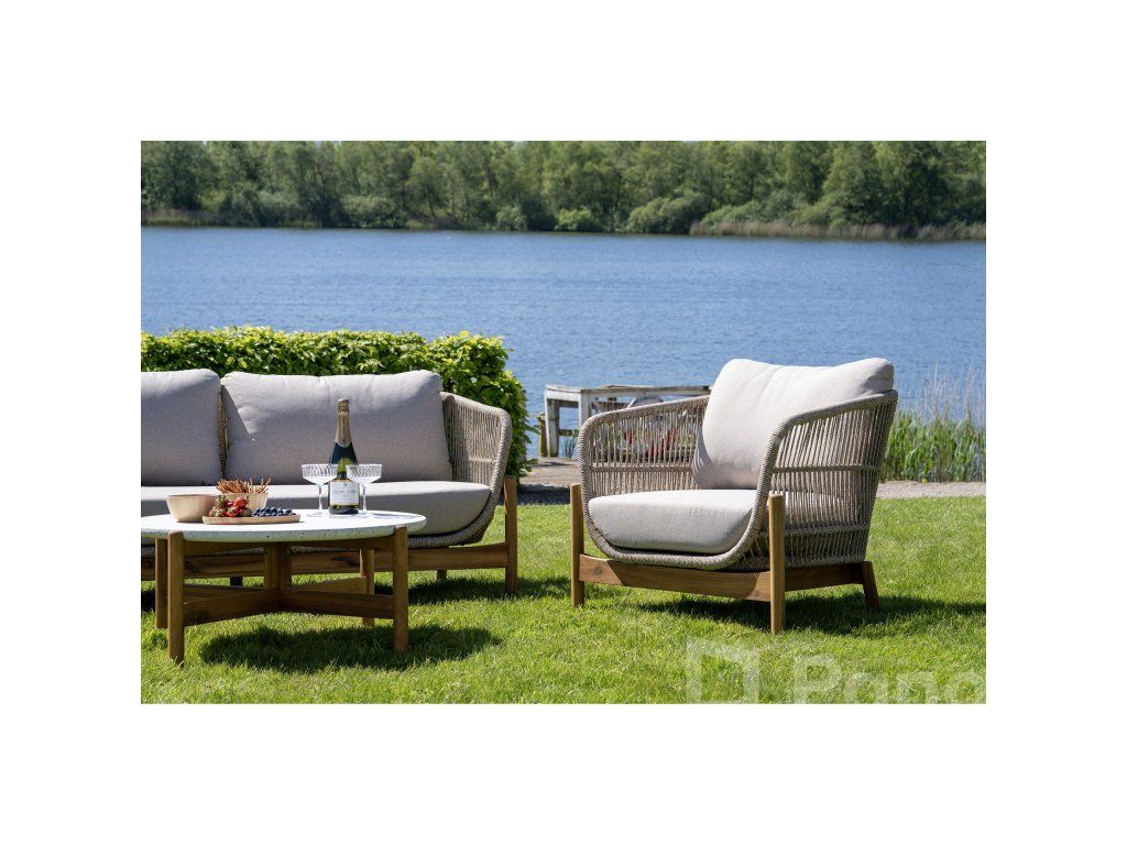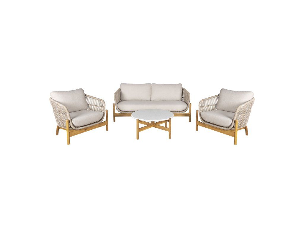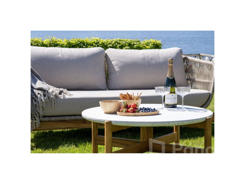Materiál: Masívna Akácia, 6 mm Lanový výplet, Oceľ (výstuže), Terrazzo (stolík), Olefin (podušky).
