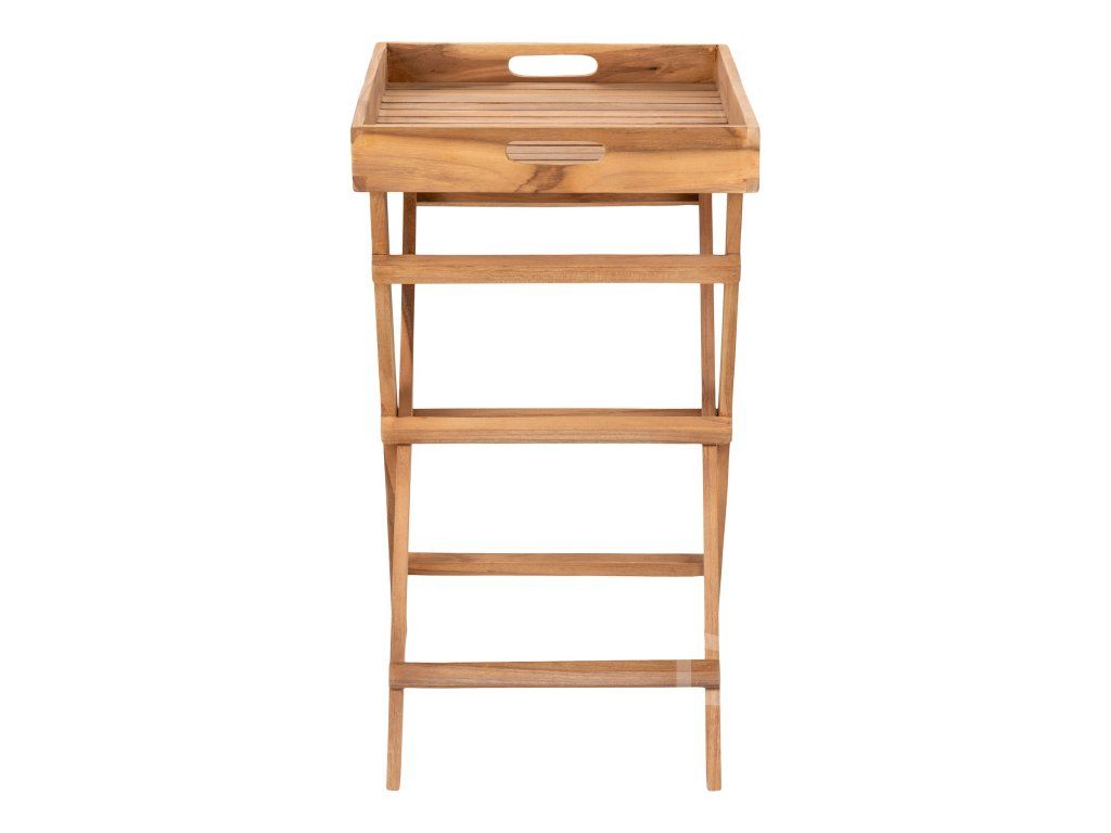 Stolík s podnosom Ronda: Prírodný teak v kompaktnom balení