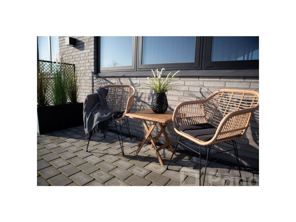 Vďaka použitiu masívneho prírodného teaku a štvorcovému dizajnu pôsobí stolík Bilbao veľmi stabilne a hodnotne. Výška 50 cm je presne na úrovni lakťových opierok väčšiny lounge kresiel, čo zabezpečuje maximálnu ergonómiu pri odkladaní vecí.
