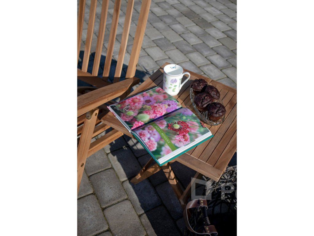Nadčasový dizajn: Latkový dizajn vrchnej dosky umožňuje odtekanie dažďovej vody a zároveň dodáva stolíku typický prímorský charakter.