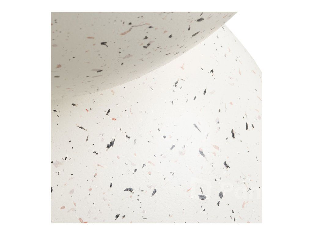 Stolík Bonita je výrazným dizajnovým kúskom, ktorý klame telom. Hoci na prvý pohľad pôsobí ako masívny kus opracovaného kameňa s trendy terrazzo vzhľadom, v skutočnosti je vyrobený z inovatívneho fiberclay (zmes magnézia a sklených vlákien). Vďaka tomu je odolný, pevný, no stále manipulovateľný.