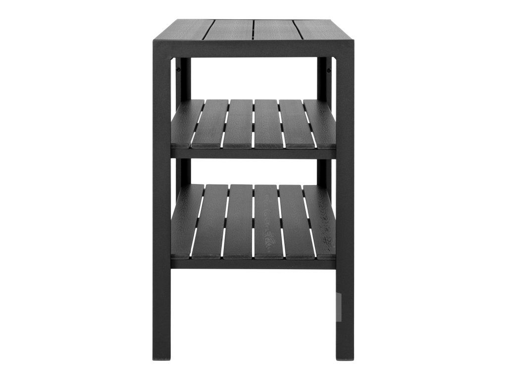 Vozík je postavený na ľahkej, ale pevnej hliníkovej konštrukcii, ktorá je doplnená o tri police z nonwoodu (PE). Táto kombinácia zaručuje, že vozík nikdy nezačne hrdzavieť a police nevyžadujú žiadne olejovanie ani špeciálnu starostlivosť – stačí ich utrieť vlhkou handričkou.