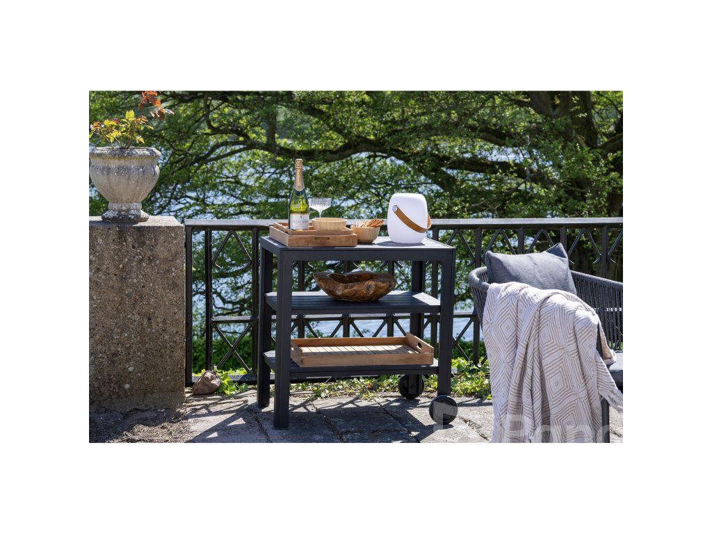 Servírovací vozík Taormina v modernom čiernom prevedení je dokonalým doplnkom pre každého hostiteľa. Či už servírujete osviežujúce letné drinky, popoludňajší čaj alebo potrebujete extra odkladací priestor pri grilovaní, tento vozík kombinuje industriálnu odolnosť s čistým škandinávskym dizajnom.