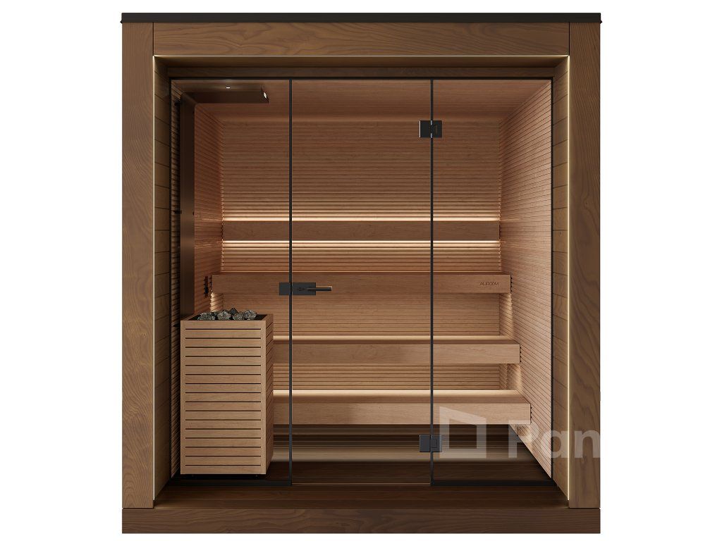 Auroom Aurea spája prémiové materiály, atmosférické LED osvetlenie a flexibilné dispozičné riešenia. Štandardnou súčasťou je ohrievač Auroom Core a ovládacia jednotka UKU Glass s Wi-Fi — sauna je pripravená na okamžité používanie bez nutnosti dokupovať základnú výbavu zvlášť.