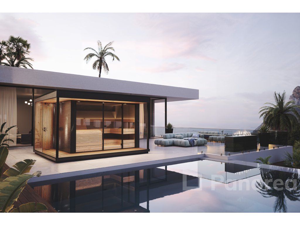Vonkajšia sauna s výrazným architektonickým dizajnom